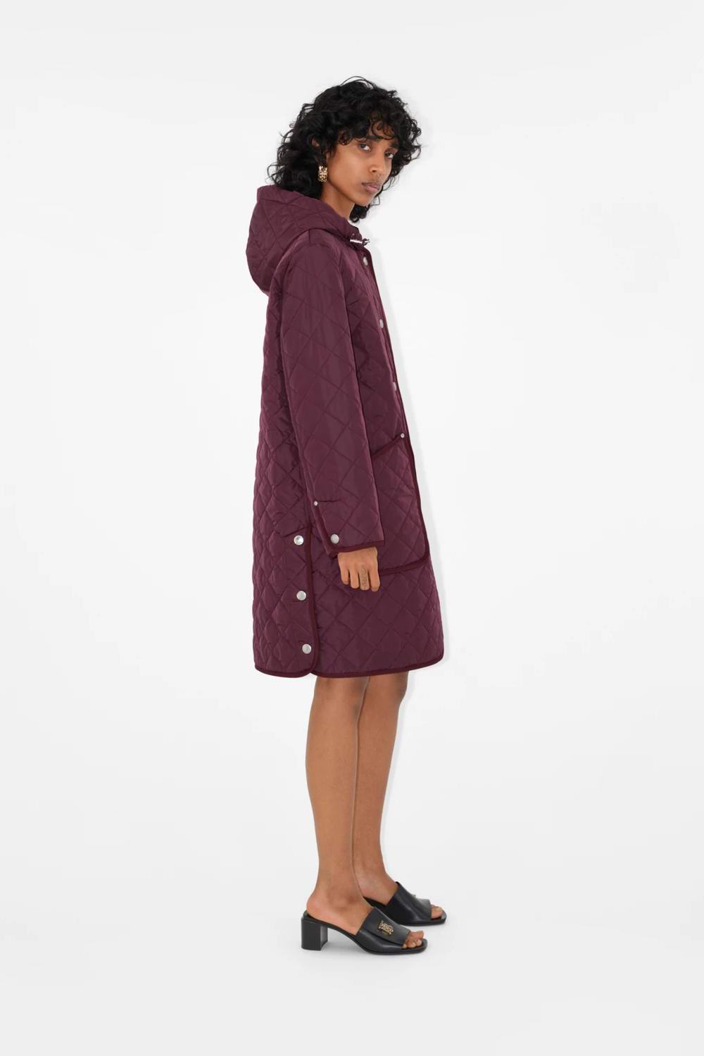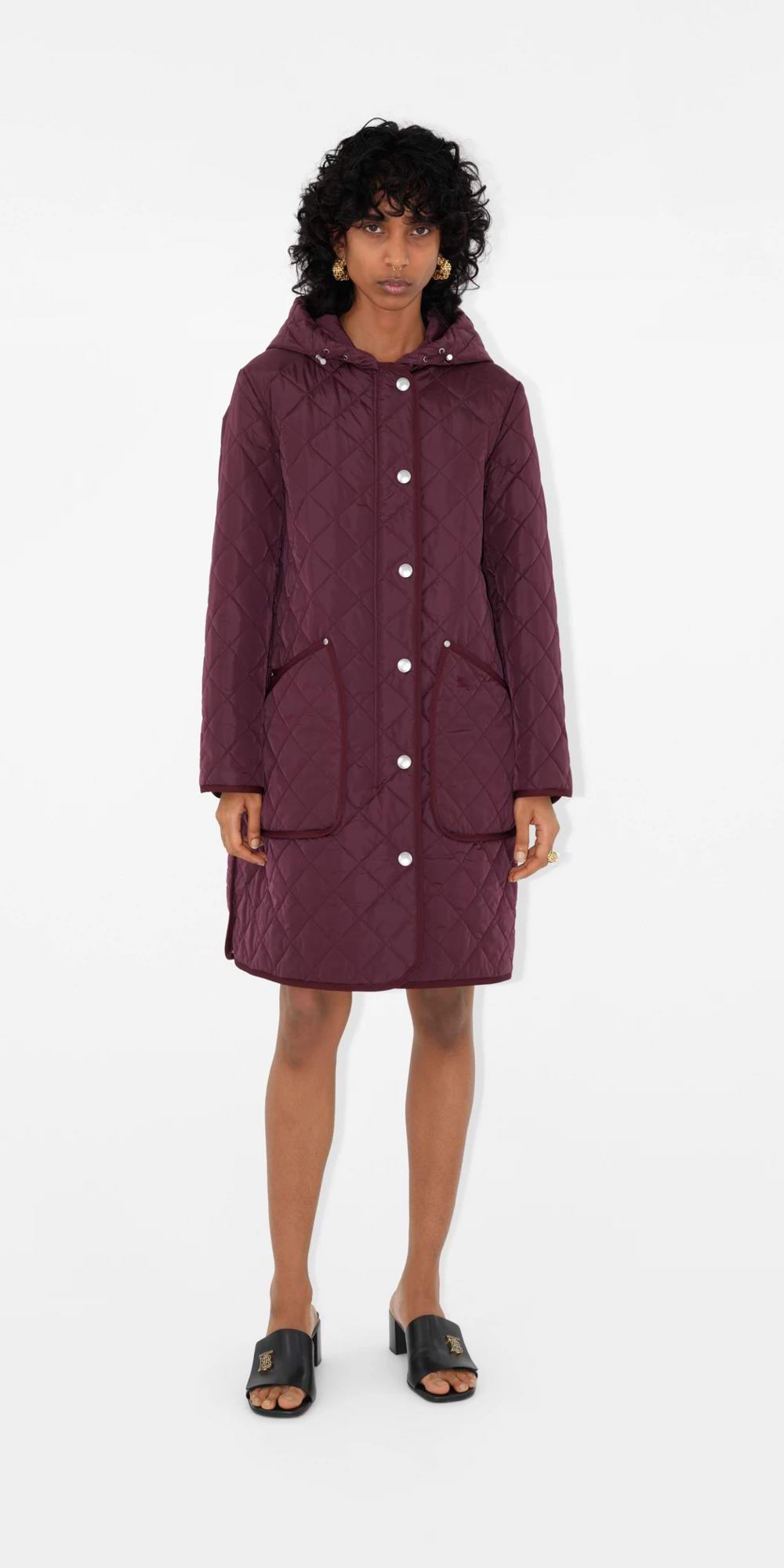 绗缝尼龙连帽大衣