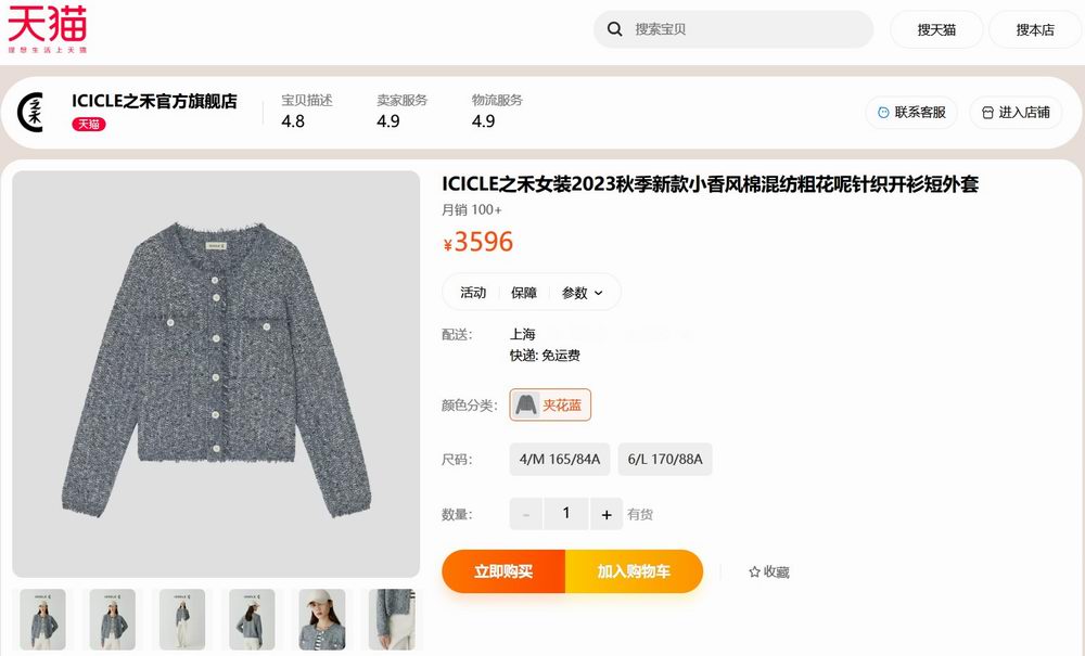 棉混纺花式纱圆领开衫面料花色新颖肌理丰富毛边设计丰富视觉层次 打造精致优雅的年轻感女性形象