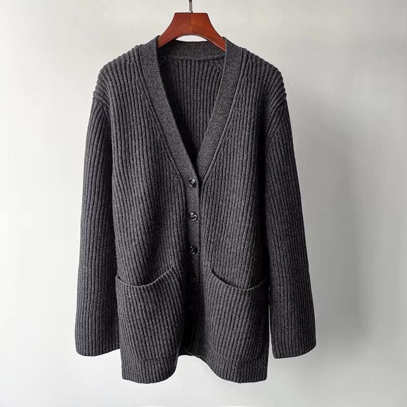 罗纹羊毛开襟衫