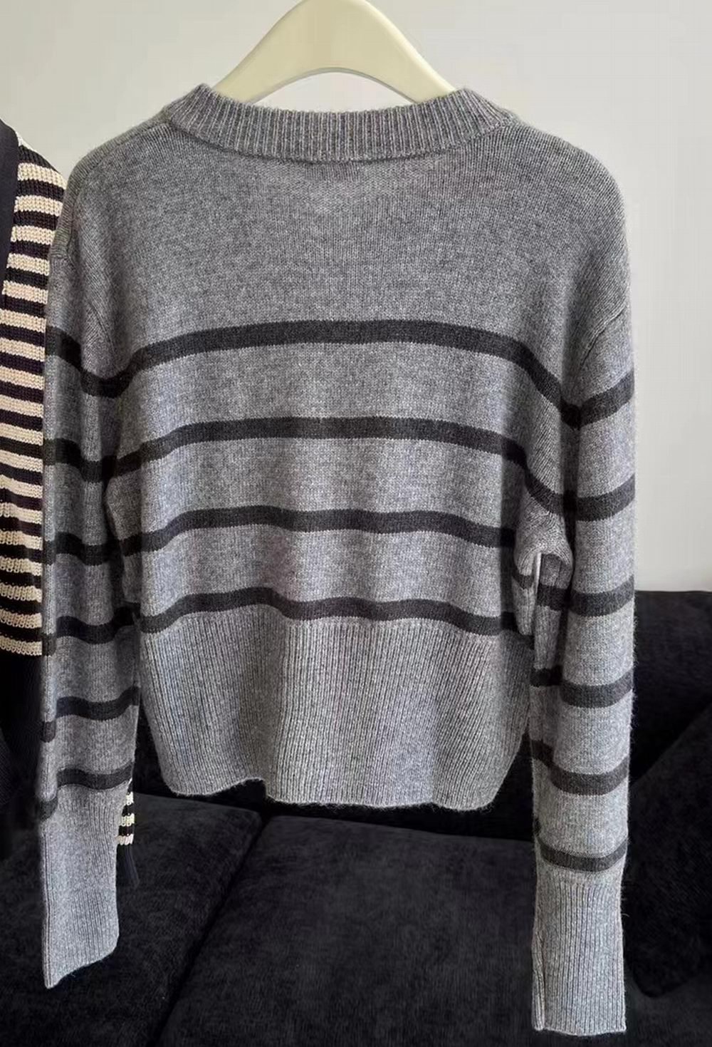 传统图案与女性化细节组合,赋予这款羊绒开衫不一般的都市风范。源自水手灵感的饰纹辅以袖管最后一条杠线上的镶珠刺绣,彰显Brunello Cucinelli的纯粹风格的优雅