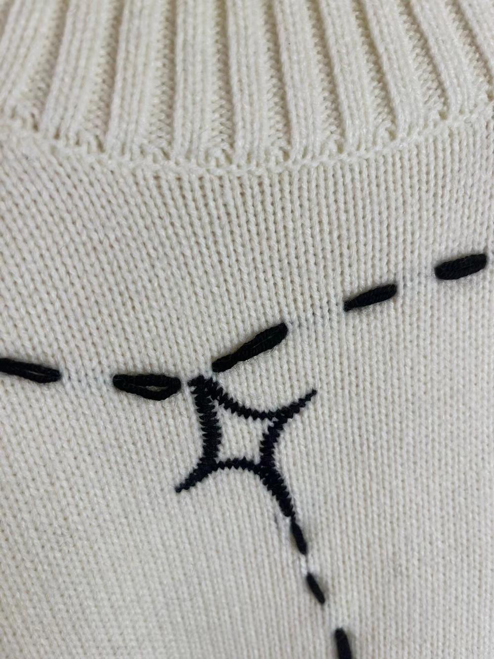 采用白色羊毛混纺平纹针织面料精心制作,高密的织法,面料触感非常柔软细腻,亲肤透气,织物纹理清晰 肉眼可见的细腻蓬松感 质感无敌! 罗纹半高领设计,饰以对比鲜明的星座刺绣点缀别具一格,慵懒随意又高级