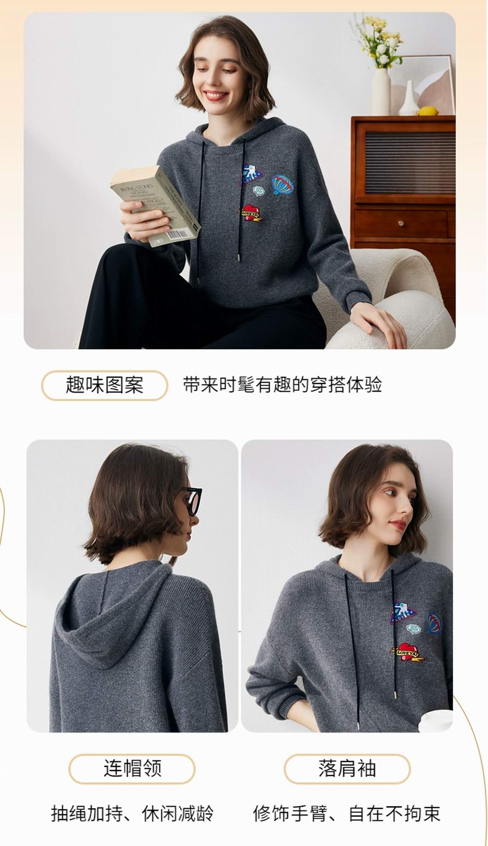 连帽宽松休闲羊绒衫
